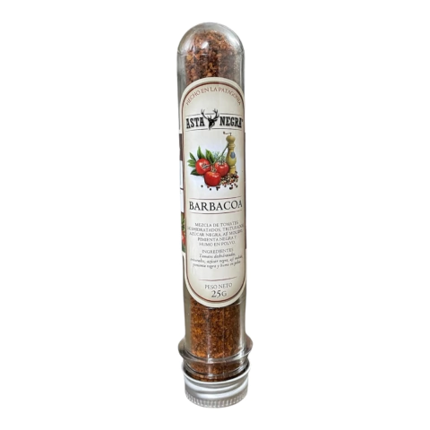 Aderezo Barbacoa en tubo Granjas Patagónicas es una exquisita mezcla de tomates deshidratados triturados, azúcar negra, ají molido, pimienta negra y humo en polvo, que aporta un sabor ahumado y equilibrado a tus platos. Presentado en un práctico tubo de plástico de 25 gramos, es ideal para condimentar carnes y preparaciones al estilo patagónico. Elaborado en Bariloche, Río Negro, Argentina, garantiza calidad y autenticidad regional en cada uso.