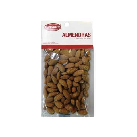 Almendra Pelada Salada y Tostada El Peoncito x 100 gr. Almendras sin cáscara, tostadas y saladas. Ricas y naturales. Contiene 100 gr. Marca: El Peoncito